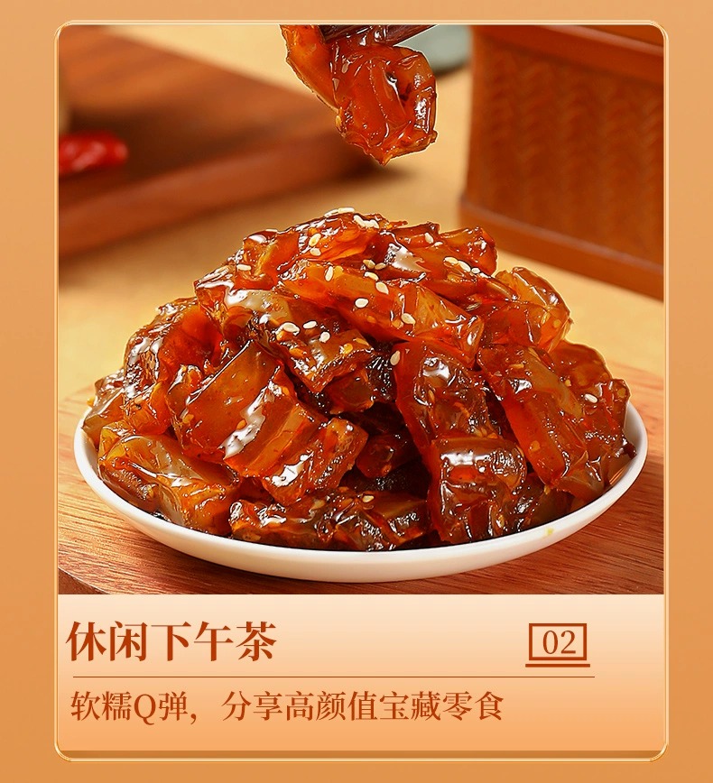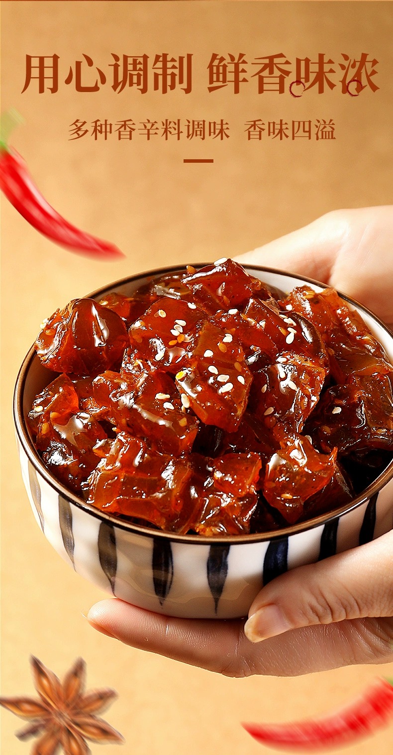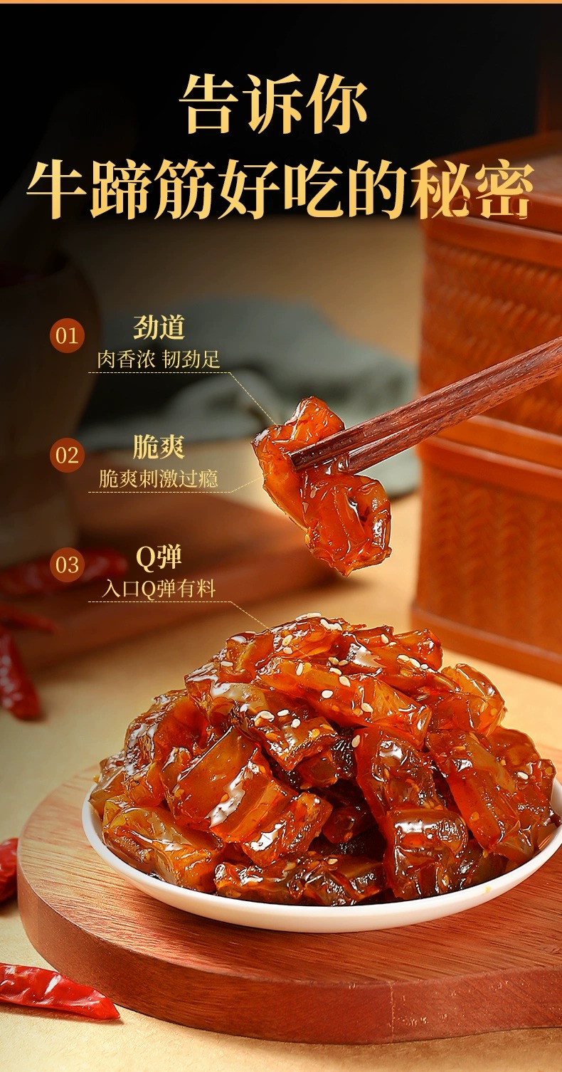 牛筋富含豐富的膠原蛋白,是美容養(yǎng)顏的佳品 。而且它脂肪含量低,還不含膽固醇,既能滿足你對美食的渴望,又不用擔心長胖,是追劇、嘮嗑、下酒的絕佳伴侶,也是送給家人朋友健康又美味的貼心好禮 。